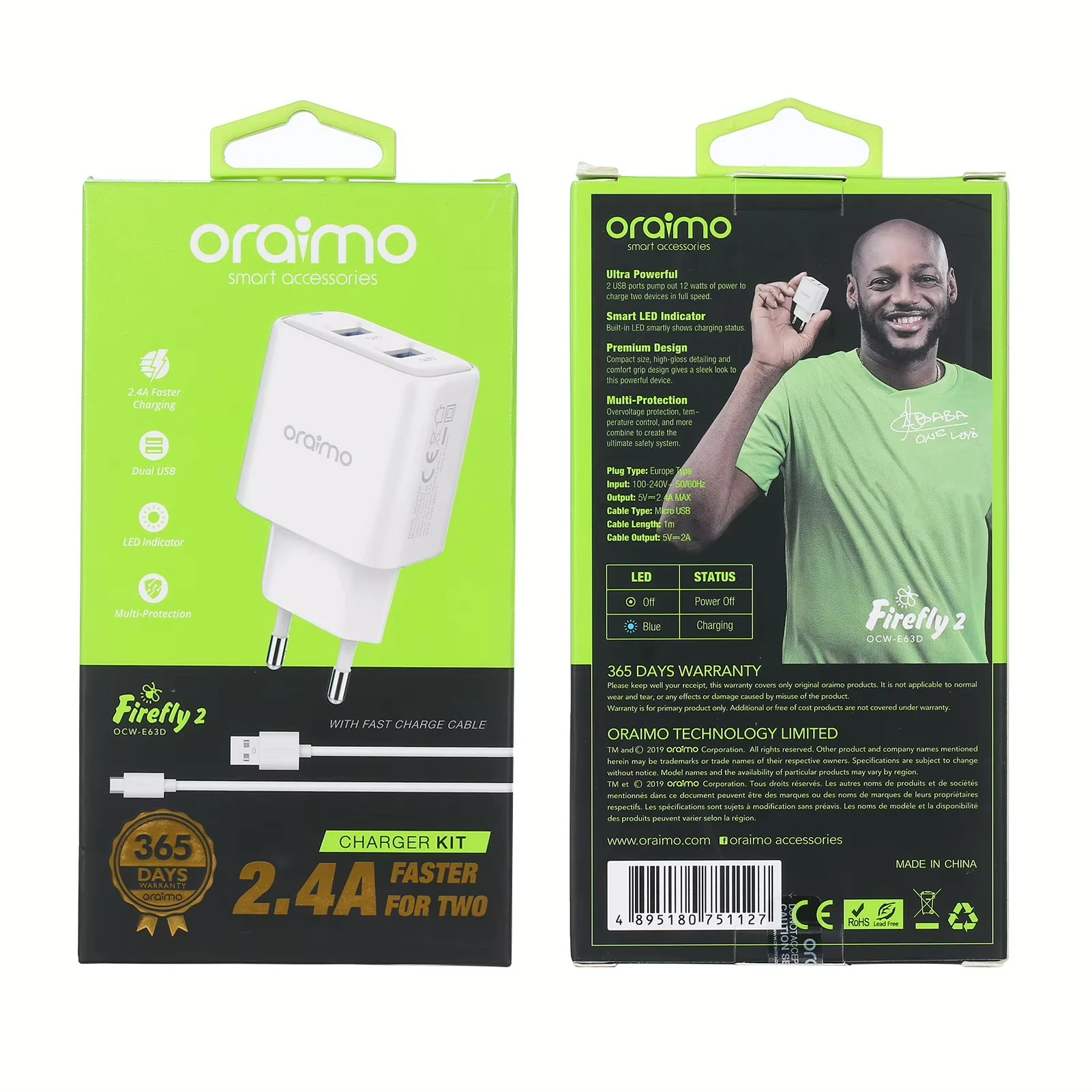 Oraimo 2.4A Dual USB Fast Charger With Lightning Cable