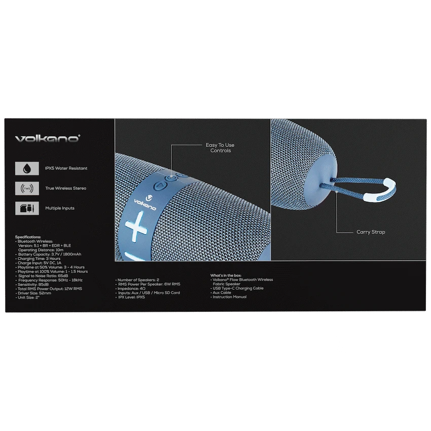 Introducing the Volkano Flow Series Portable Bluetooth Speaker, the perfect blend of style, performance, and portability. Crafted to deliver exceptional sound quality wherever you go, this sleek and compact speaker is your ideal audio companion.