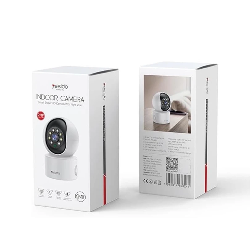 YESIDO KM10 200W HD Home Monitor Camera Two-Way Voice WiFi 2.4G Surveillance Camera Specifications: Material: PC+ABS Compression format: H.264 Pixel: 1920*1080P WiFi: 2.4G Lens: Focal length 4.0MM Sensor: 1/4.5" Image Sensor Material: PC+ ABS Compression Format: H.264 Lens Focal Length: 4.0MM APP: Carecam Pro Operating System: Android, IOS Adjustable Angle: 340° Left And Right, 68.5° Up And Down SPI Memory: 64MB Power Supply: Micro 5V=1.5A Chip: FH8626 Memory: 512MB DDR3 Storage
