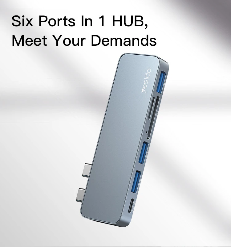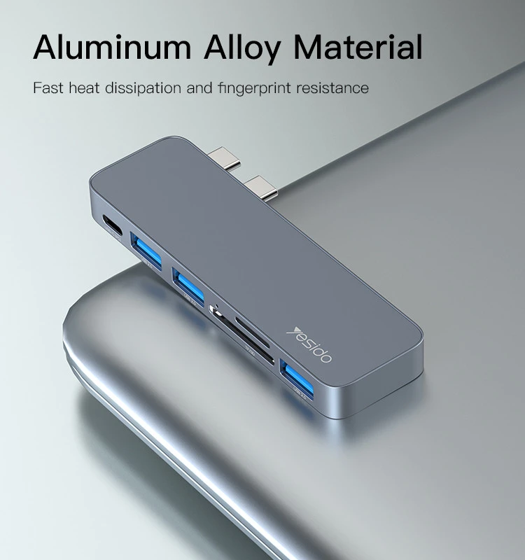 Yesido HB10 Aluminum Alloy USB C Extender Type-C Hub Laptop Computer USB Transmitter Hub Adapter