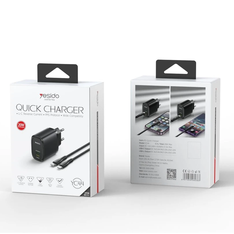 | Model | YC44 20W Fast Charging Home Charger(TC+Lightning Port) |
